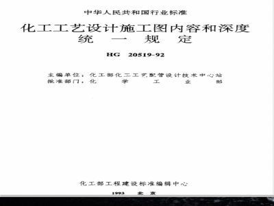 各省、自治区、直辖市、计划单列市化工厅(局、公司),各有关设计、施工单位:由化工部工艺配管设计技术中心站编制的《化工工艺设计施工图内容和深度统一规定》,业经审查,现批准为化工行业标准,编号为HG20519-92。自--元九三年四月日起施行。