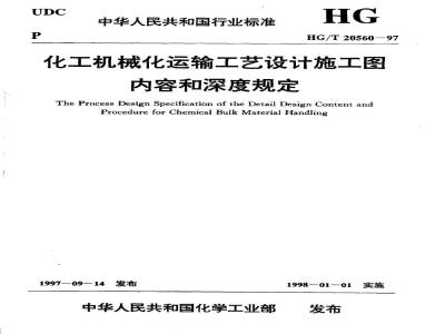 The Process Design Specification of the Detail Design content andprocedure for Chemical Bulk Material HandlingHG/T20560-97