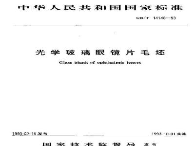 本标准规定了光学玻璃眼镜片毛坯的产品分类、技术要求、试验方法、检验规则及标志、包装、运输、贮存。本标准适用于由熔融玻璃直接压制成型的常用的几种光学玻璃眼镜片毛坯,规格尺寸、外观质量也可作其他品种参考使用。 GB/T 14148-1993 光学玻璃眼镜片毛坯 GB/T14148-1993 标准下载解压密码:www.bzxz.net