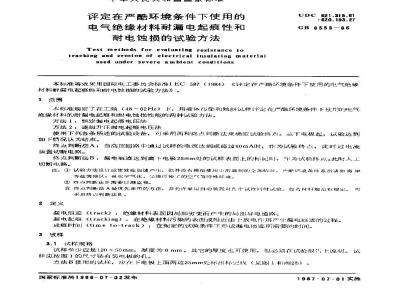 中文名称:评定在严酷环境条件下使用的电气绝缘材料耐漏电起痕性和耐电蚀损的试验方法
