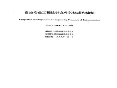 自控专业工程设计文件的组成和编制Composition and Preparation for Engineering Documents of InstrumentationHG/T20637.1-1998