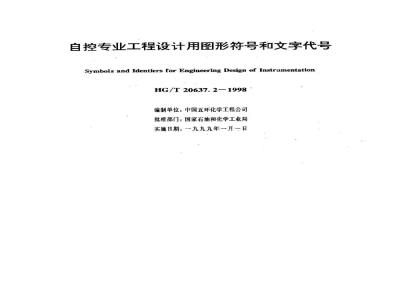 自控专业工程设计用图形符号和文字代号Symbols and Identiers for Engineering Design of InstrumentationHG/T20637.2-1998
