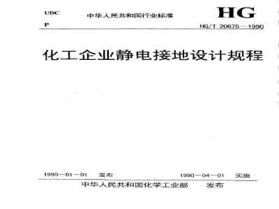 原标准号HGJ 28-1990 HG/T 20675-1990 化工企业静电接地设计规程 HG/T20675-1990 标准下载解压密码:www.bzxz.net