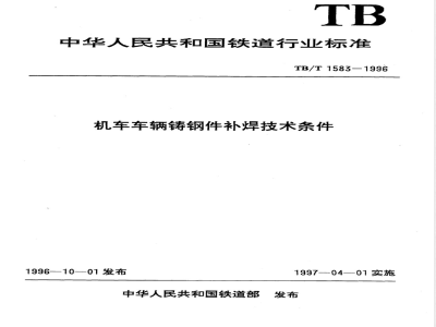 TB/T 1583-1996 机车车辆铸钢件补焊技术条件 TB/T1583-1996