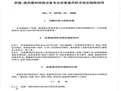 HG/T 20701.10-2000 容器、换热器和特殊设备专业设备通用技术规定编制说明 HG/T20701.10-2000 标准下载解压密码:www.bzxz.net