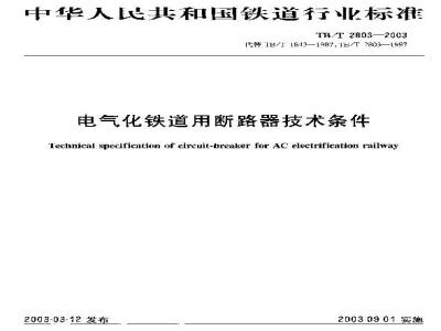 Technical specification of circuit-brcaker for AC electrification railway2003-03-12发布