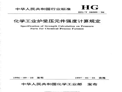 HG/T 20589-1996 化学工业炉受压元件强度计算规定 HG/T20589-1996 标准下载解压密码:www.bzxz.net
