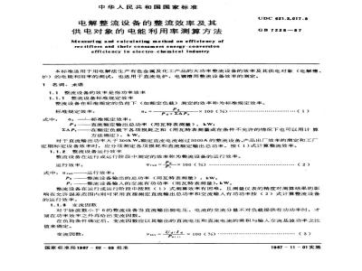 本标准适用于用电解法生产有色金属及化工产品的大功率整流设备的效率及其供电对象(电解槽、炉)的电能利用率的测试,也适用于直流电炉、电镀槽用整流设备效率的测定。 GB 7228-1987 电解整流设备的整流效率及其供电对象的电能利用率测算方法 GB7228-1987 标准下载解压密码:www.bzxz.net