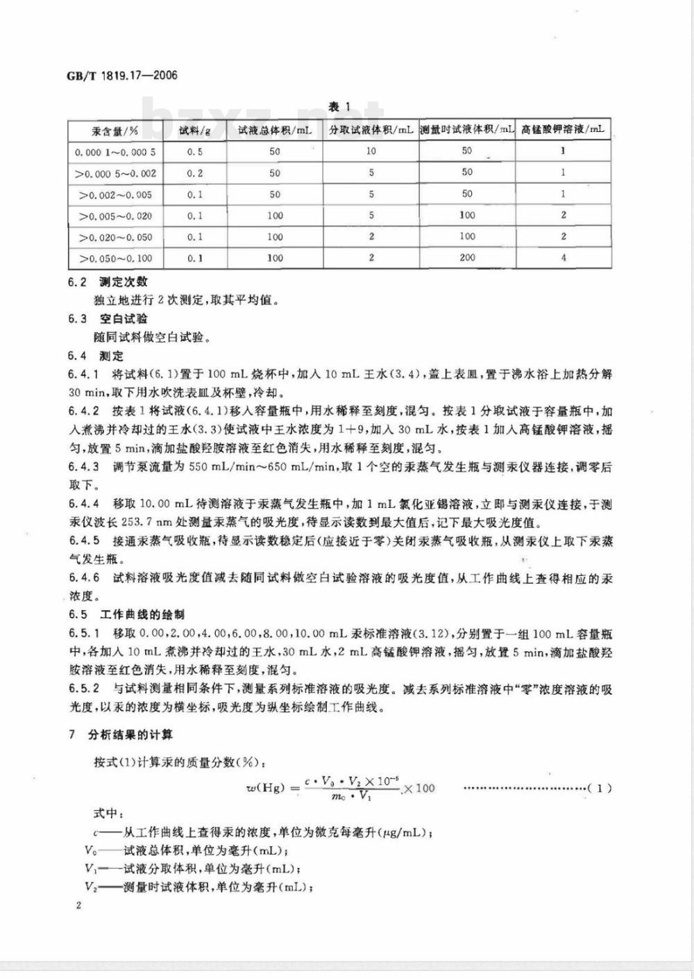 按表1称取试样(5),精确至0.0001g。GB/T1819.17—2006