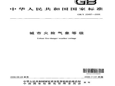 随着我国社会经济的发展、城市规模的扩大、新行业的产生和国民总资产的增长,城市火灾损失愈来愈大。由于火灾的发生,发展与气象条件关系密切,利用气象的颊报能力来进行城市火险潜在程度的预报是可行的。我国政府历来非常重视火灾预防工作,制订了“预防为主,防消结合\的方针,而火险预报和评估是预防火灾,减少火灾发生,减轻火灾损失的一项重要工作。近年来,全国各地诈多气象部门与消防部门合作,积极开展了城巾火险与气象条件的关系及其预报研究,有的还提出了当地的城市火险气象等级标准,但各地采用的气象因了,计算方法,指标划分、等级划分及命名相差很大。不具有可比性和普遍适用性。因此,非常有必要制订一套简便、全国通用的城市火险气象等级标准,使火险预报和评估工作业务化、标准化。本标准虽是推荐性标,但所规定的城市火险气象等级的五个级别、名称以及从低到高的原则,应当全国统一采纳。因我国地域辽阔,地理气候复杂多样,不但存在南北差异,还存在海拔高度差异,火源和可燃物差别也很大,所以对火险气象指数划分的临界值,可以在应用本标准一段时间后作适当调整,以适应当地的情说。