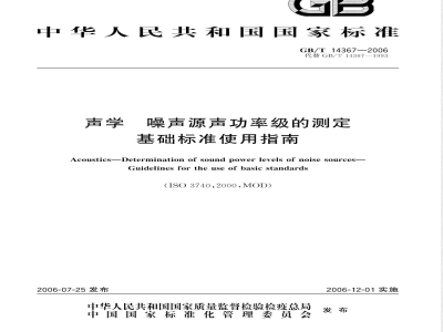 英文名称:Acoustics―Determination of sound power levels of noise sources―Guidelines for the use of basic standards
