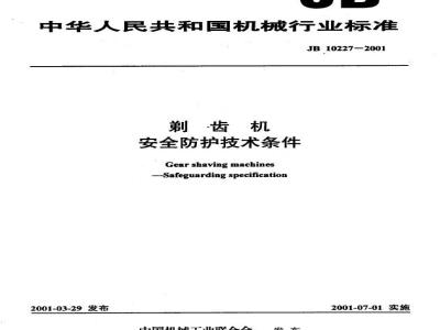 本标准的第3章及4.2.4.2、4.3.3.3、4.7.1、4.7.3、4.9.3.2为推荐性的,其余为强制性的。本标准是根据GB157601995《金属切削机床安全防护通用技术条件》,按GB168561997《机核安全风险评价的原》,在对剃齿机进行危险分析的基础上,结合剃齿机产品的结构特点而制定的,是对GB15760的补充和具体化。本标准在编写规则上符合GB/T16755一1997《机械安全安全标准的起章与表述规则》的要求。与本标准相配套的标准有: