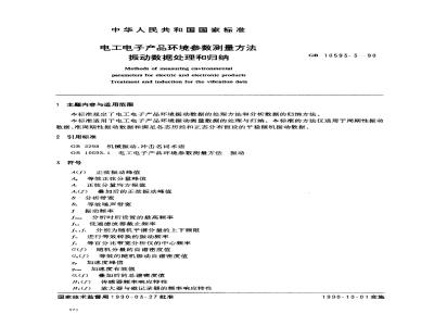 本标准规定了电工电子产品环境振动数据的处理方法和分析数据的归纳方法。本标准适用于电工电子产品环境振动测量数据的处理与归纳。本标准的方法仅适用于周期性振动数据、准周期性振动数据和满足各态历经和正态分布假设的平稳随机振动数据。 GB 10593.3-1990 电工电子产品环境参数测量方法 振动数据处理和归纳 GB10593.3-1990 标准下载解压密码:www.bzxz.net