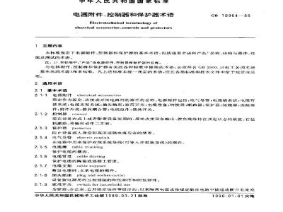 电器附件、控制器和保护器术语Electrotechnical terminology ofelectrical accessnries,controls and protectorsGB 10964—89