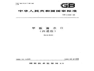 CB/T 3885-1999 GB 11695-1989 甲板漏水口(四进位) GB11695-1989 标准下载解压密码:www.bzxz.net