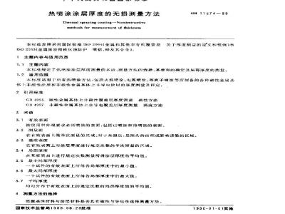 本标准规定了热喷涂涂层厚度的无损测量的术语、测量方法的选择、基准面的确定及局部厚度的测量。本标准适用于所有热喷涂方法,包括火焰喷涂、电弧喷涂、等离子喷涂等所制备的各种磁性金属基本体上非磁性涂层和非磁性金属基体上非导电涂层的厚度测量及评定。 GB/T 11374-1989 热喷涂涂层厚度的无损测量方法 GB/T11374-1989 标准下载解压密码:www.bzxz.net