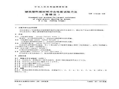 本标准规定用落锤法对硬质塑料板材在规定的冲击条件下,测其产生50%破坏所需能量。本标准适用确定硬质塑料板材耐冲击性能。2术语