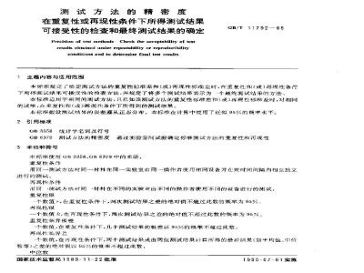 在重复性或再现性条件下所得测试结果可接受性的检查和最终测试结果的确定Precision of test methody Check the acceptabillty of testrcsults obtainicd under repeatabillty or reproducibilityconditions and to determine final test results1主题内容与适用范围