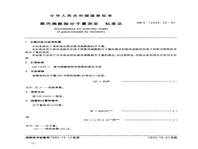 本标准规定了用粘度法测定聚丙烯酰胺的分子量。GB/T12005.10-92