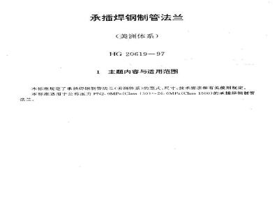 本标准规定了承插焊钢制管法兰(美洲体系)的T(式、尺寸、技术要求和有关使用规定。本标准适用于公称压力PN 2.0 MPa(Cass 150)一26.0 MPa(Class 1500)的承插焊钢制管法兰。 HG 20619-1997 承插焊钢制管法兰(美洲体系) HG20619-1997 标准下载解压密码:www.bzxz.net