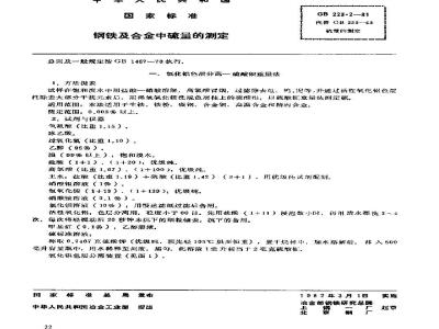 部分被GB/T 223.72-1991代替%GB 223-1963 GB/T 223.2-1981 钢铁及合金中硫量的测定 GB/T223.2-1981 标准下载解压密码:www.bzxz.net