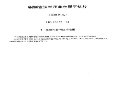 HG 20627-1997 钢制管法兰用非金属平垫片(美洲体系) HG20627-1997 标准下载解压密码:www.bzxz.net