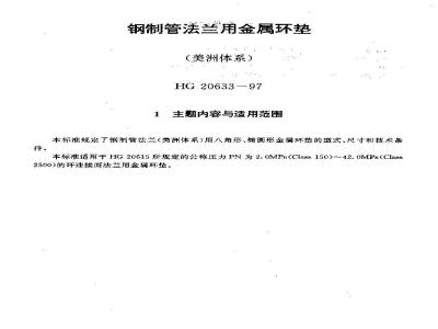HG 20633-1997 钢制管法兰用金属环垫(美洲体系) HG20633-1997 标准下载解压密码:www.bzxz.net