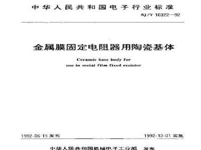 SJ/T 10322-1992 金属膜固定电阻器用陶瓷基体 SJ/T10322-1992 标准下载解压密码:www.bzxz.net
