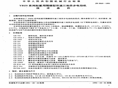 被JB/T 5869-2005代替 JB 5869-1991 YBZS系列起重用隔爆型双速三相异步电动机 技术条件 JB5869-1991 标准下载解压密码:www.bzxz.net