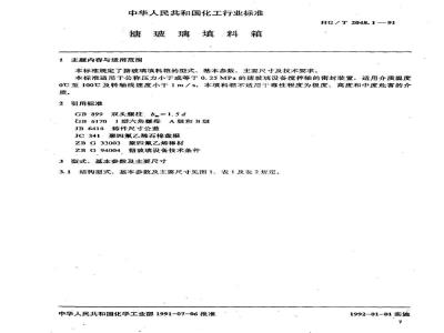 结构型式、基本参数及主要尺寸见图1、表1及表2规定,中华人民共和国化学工业部1991-07-06批准1992-01-01实施