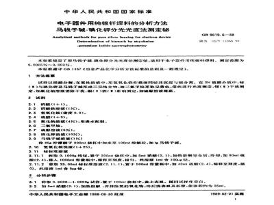 电子器件用纯银钰焊料的分析方法马钱子碱-碘化钾分光光度法测定铋Analytical methods for pure silver brazing for electron deviceDetermination of bismuth by strychnine-potasslum iodide spectrophotometryGB9619.6-—88