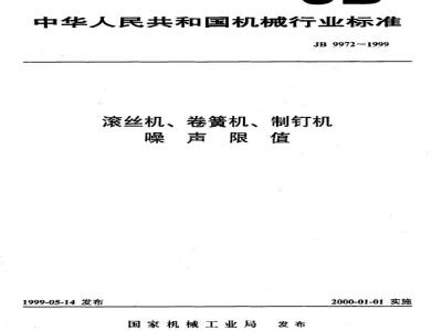 本标准规定了滚丝机、卷簧机、制钉机的声功率级和声压级的噪声限值。本标准适用于滚丝机、卷簧机和制钉机。 JB 9972-1999 滚丝机、卷簧机、制钉机 噪声限值 JB9972-1999 标准下载解压密码:www.bzxz.net