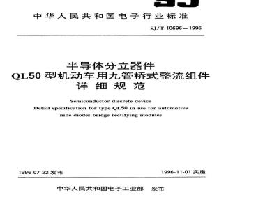 SJ/T 10696-1996 半导体分立器件 QL50型机动车用九管桥式整流组件详细规范 SJ/T10696-1996 标准下载解压密码:www.bzxz.net