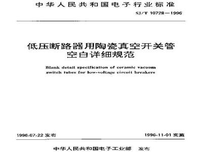 SJ/T 10728-1996 低压断路器用陶瓷真空形状管空白详细规范 SJ/T10728-1996 标准下载解压密码:www.bzxz.net