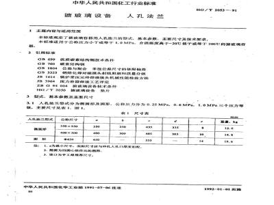HG/T 2053-1991 搪玻璃设备 人孔法兰 HG/T2053-1991 标准下载解压密码:www.bzxz.net