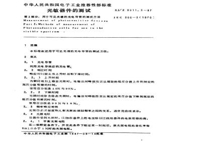 SJ/Z 9011.3-1987 光敏器件的测试 第3部分:用于可见光谱的光电导管的测试方法 SJ/Z9011.3-1987 标准下载解压密码:www.bzxz.net