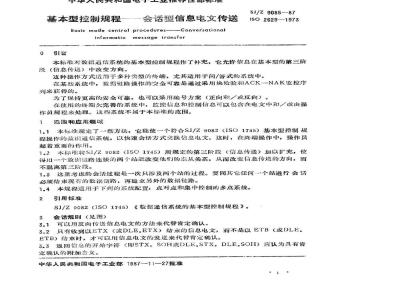 1.1本标准规定了一些方法,它能使一个符合SJ/Z9082(ISO1745)基本型控制规程操作的数据通信系统,以快速会话方式交换信息电文。这时,在终端操作中,操作员起着重要的作用。
