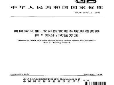 中文名称:离网型风能、太阳能发电系统用逆变器 第2部分:试验方法
