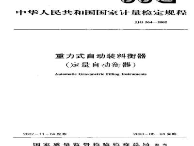 JJG 564-2002 重力式自动装料衡器(定量自动衡器)检定规程 JJG564-2002 标准下载解压密码:www.bzxz.net