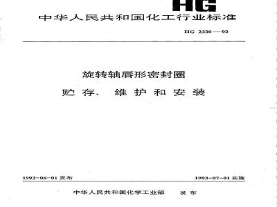 HG 2330-1992 旋转轴唇形密封圈贮存维护和安装 HG2330-1992 标准下载解压密码:www.bzxz.net