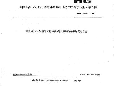 原标准号GB 6758-1986 HG/T 2194-1991 帆布芯输送带布层接头规定 HG/T2194-1991 标准下载解压密码:www.bzxz.net