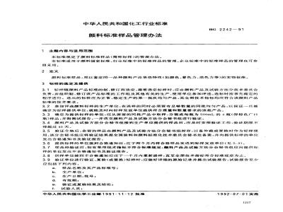 本标准规定了颜料标推样品(简称标样)的管理办法。HG 2242—91
