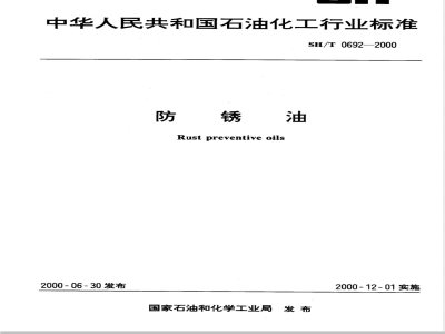 本标准规定了以石油溶剂、润滑油基础等为基础原料,加入多种添加剂调制而成的防锈油的技术条件。 SH/T 0692-2000 防锈油 SH/T0692-2000 标准下载解压密码:www.bzxz.net