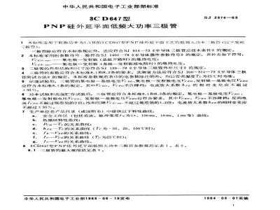 1本标准适用于耗散功率为1.5W的3CD647型PNP硅外延平面T艺的低频人功率三极管(以下简称三极管)。
