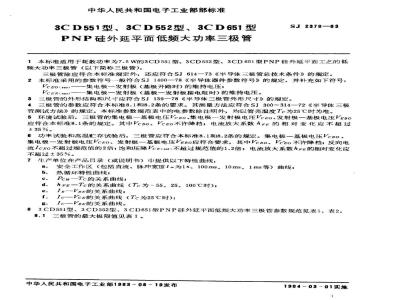 83CD551型、3CD552型、3CD651型PNP硅外延平面低频大功率三极管参数规范见表1、表2。8.1三极管的最大极限值见表1。中华人民共和国电子工业部1983-08-19发布1984-03-01实施