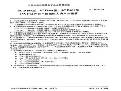 83CD553型、3CD554型、3CD653型PNP硅外延平面低频大功率三极管参数规范见表1、表2。8.1三极管的最大极限值见表1。中华人民共和国电子工业部1983-08-19发布1