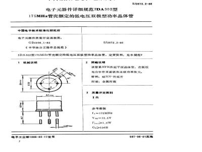 SJ 2672.2-1986 电子器件详细规范 3DA302型175MHz管壳额定的低电压双极型功率晶体管 SJ2672.2-1986 标准下载解压密码:www.bzxz.net
