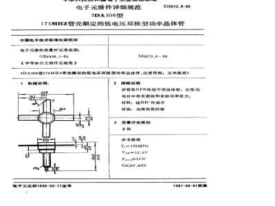 中文名称:电子器件详细规范 3DA306型175MHz管壳额定的低电压双极型功率晶体管