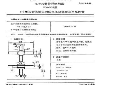 SJ 2672.8-1986 电子器件详细规范 3DA308型175MHz管壳额定的低电压双极型功率晶体管 SJ2672.8-1986 标准下载解压密码:www.bzxz.net