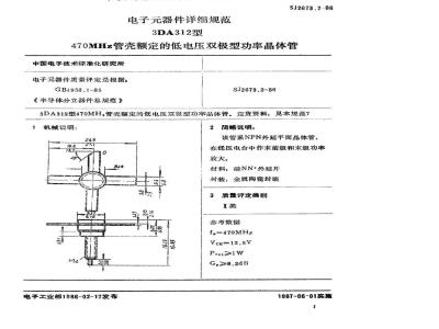 中文名称:电子器件详细规范 3DA312型470MHz管壳额定的低电压双极型功率晶体管